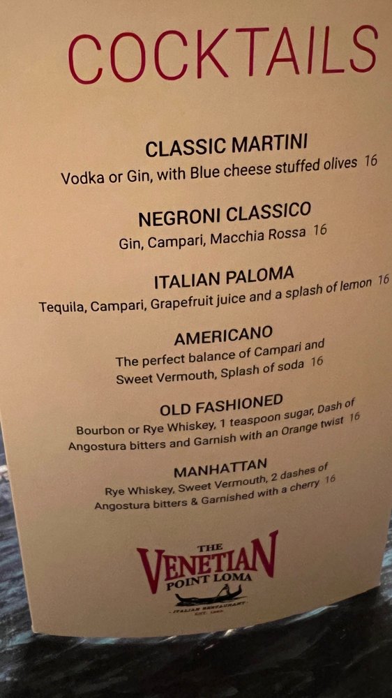 Introducing The Venetian Restaurant, an Italian eatery located at 3663 Voltaire St in San Diego, CA. This restaurant offers a wide range of options such as salads, soups, pizzas, and starters. Customers rave about the excellent service and food quality, with some calling it the best pizza in town. The menu includes delicious items like the Antipasto salad, BBQ Chicken Pizza, and Bruschetta & Prosciutto starter. The ambiance is described as wonderful, making it a go-to spot for many. With a focus on fresh ingredients and family-friendly vibes, The Venetian Restaurant stands out for its authentic Italian flavors and welcoming atmosphere. Whether you're dining in or taking out, this establishment is sure to leave a lasting impression.